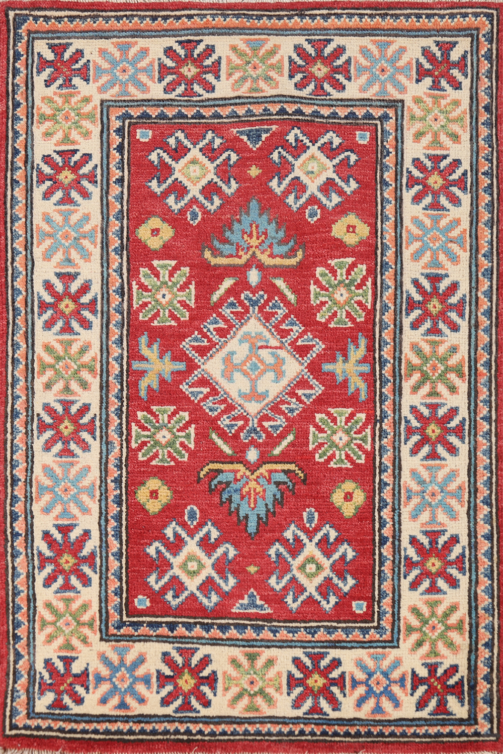 Vibrant Color Geometric Handmade Kazak Pakistani Small Rug Red 2x3 ft
