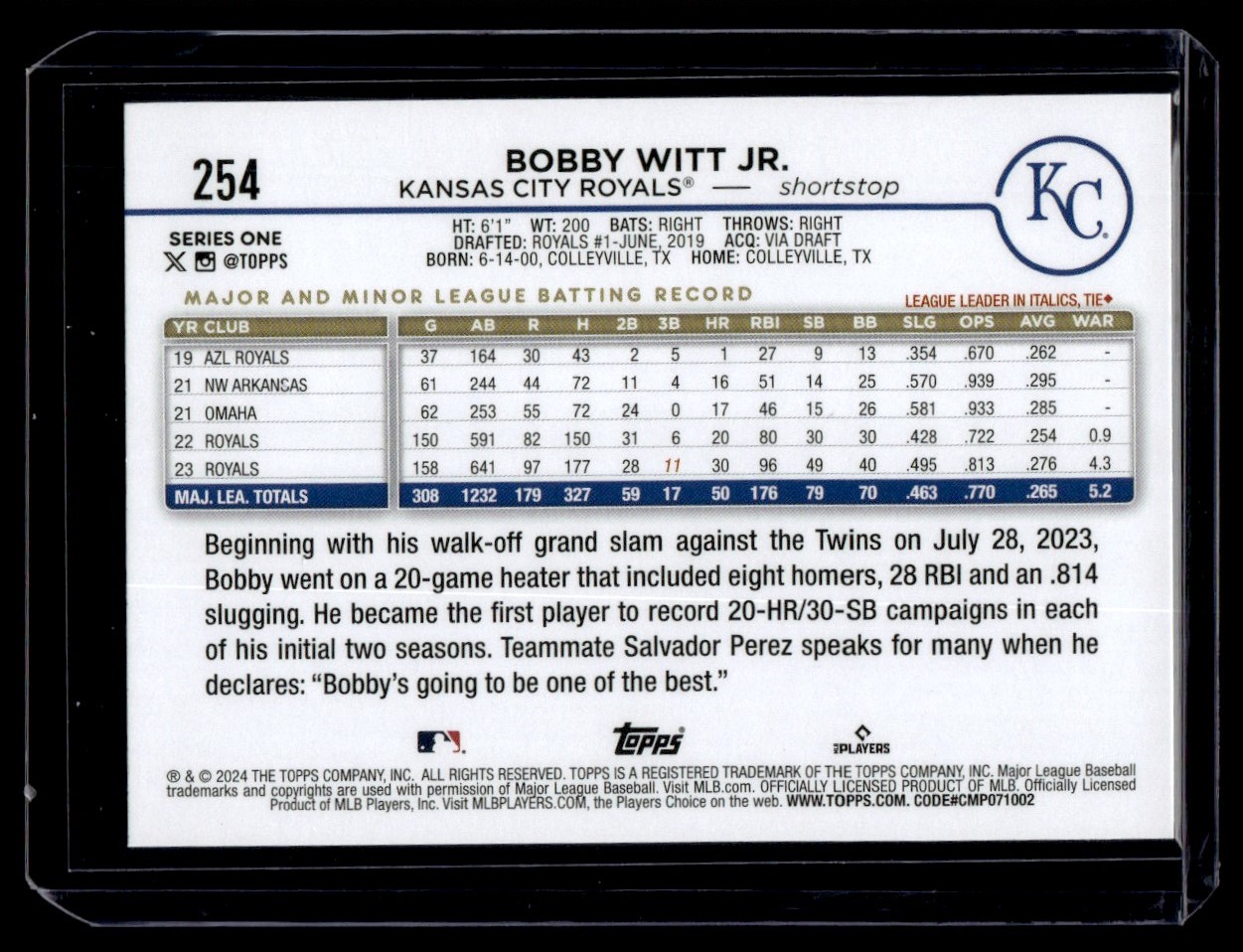 2024 Topps Series 1 Bobby Witt Jr. Kansas City Royals #254