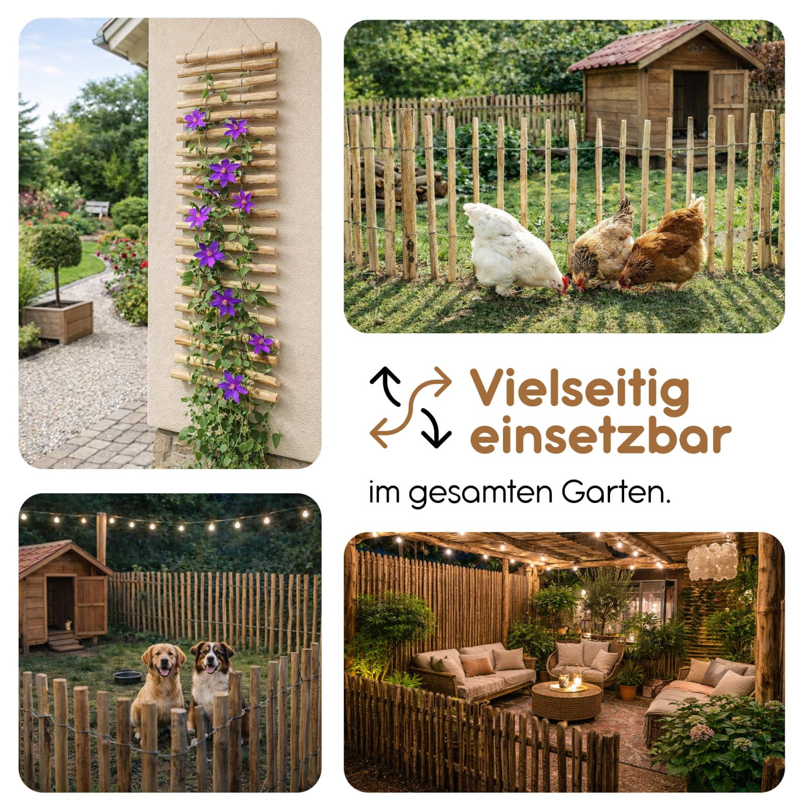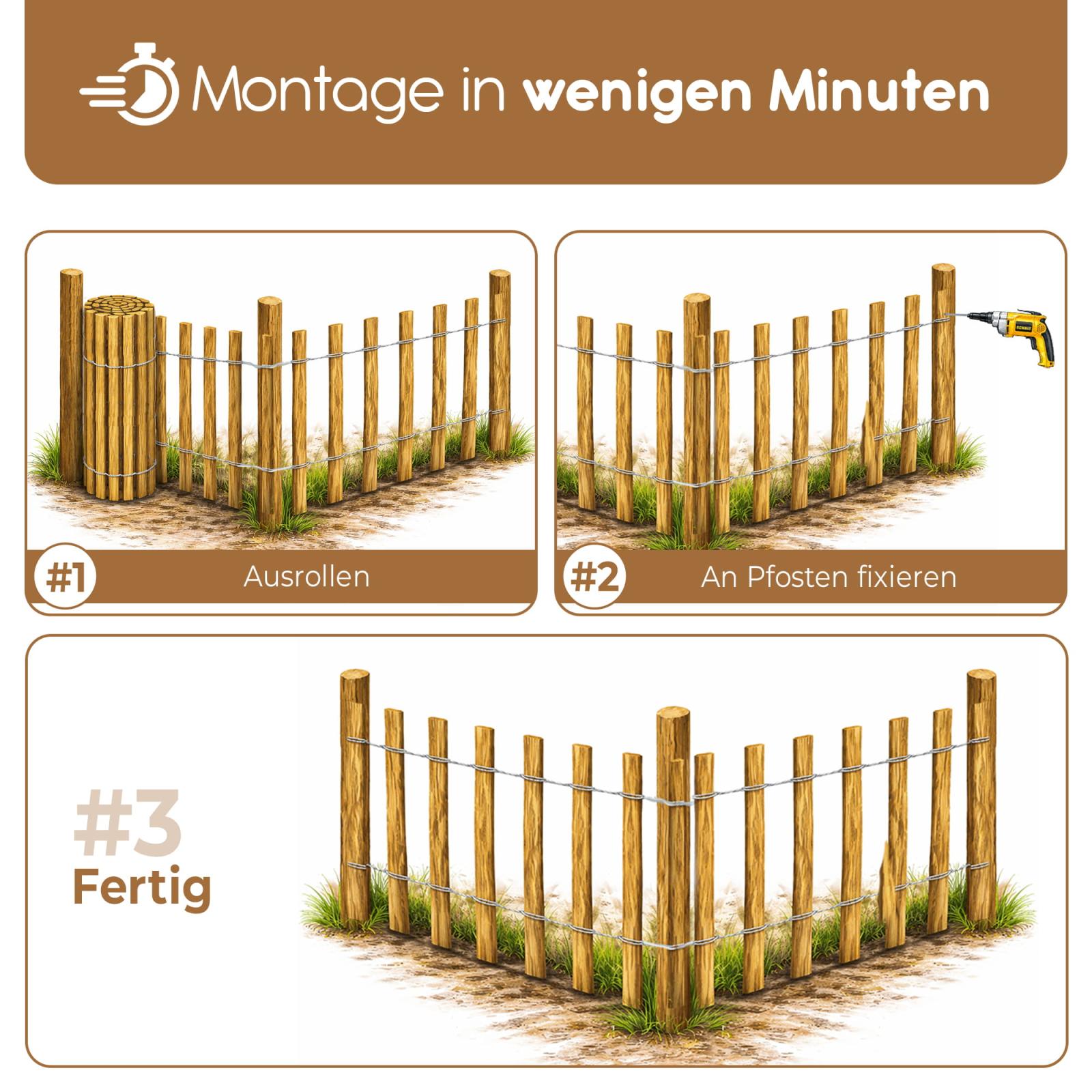 Garten-Zaun aus Holz mit viel Spielraum für individuelle Projekte: Vorgartenzaun, dekorative Teichumrandung, Minizaun, Schafzaun, Hundezaun, Rollzaun uvm.