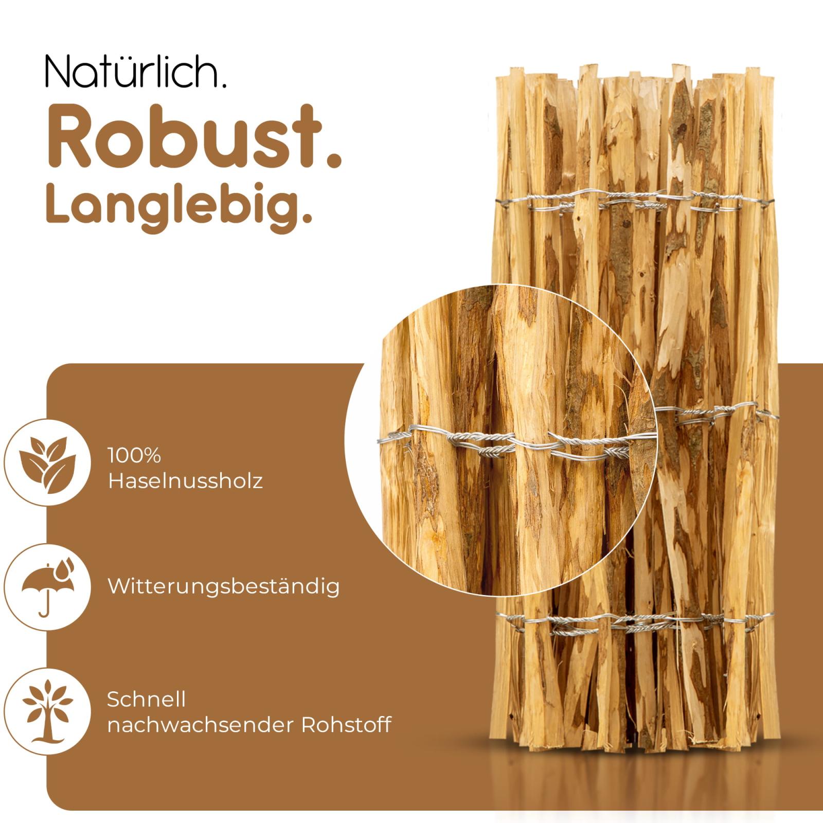 Im Vergleich zu herkömmlichen Zäunen oder Sichtschutzvorrichtungen ist ein Staketenzaun nicht nur schöner, sondern auch individueller. Der Staketenzaun ist aus charmantem Vollholz der Haselnuss gefertigt.