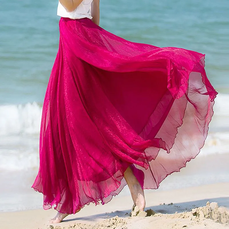Long Summer Beach Chiffon Wrap Cover Up Maxi Skirt For Women Beach High Waisted Pleated Dancing Party Skirts Womens