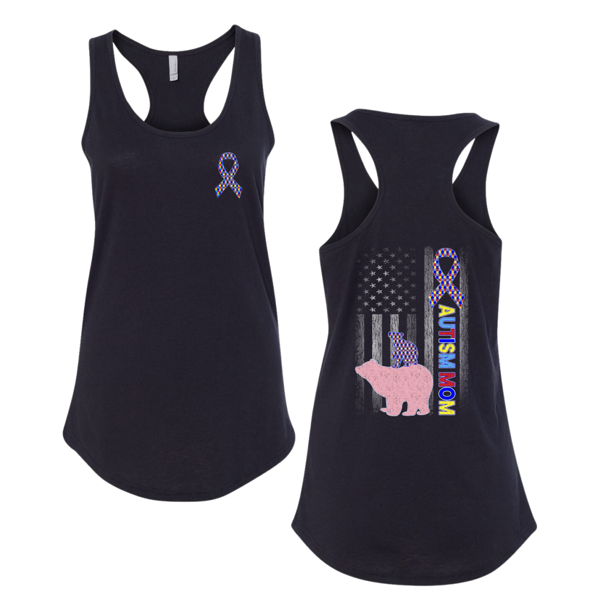 Autism Awareness Mom Bear Puzzle Autism Ribbon Ladies Racerback Tank Top