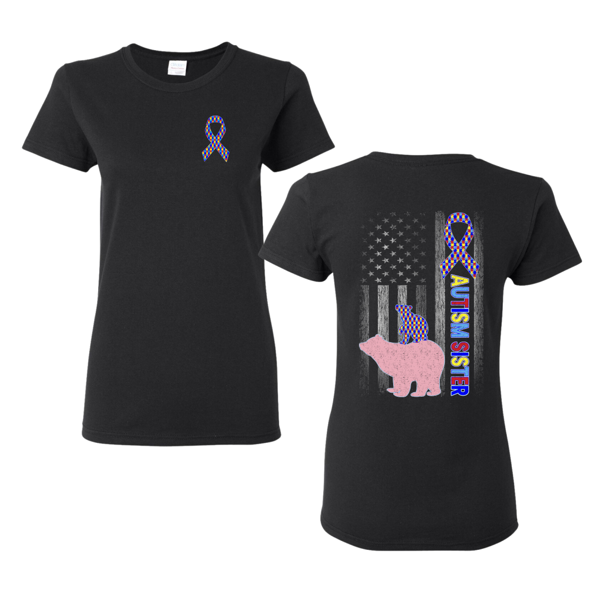 Autism Awareness Sister Bear Puzzle Autism Ribbon Womens Graphic T-Shirt