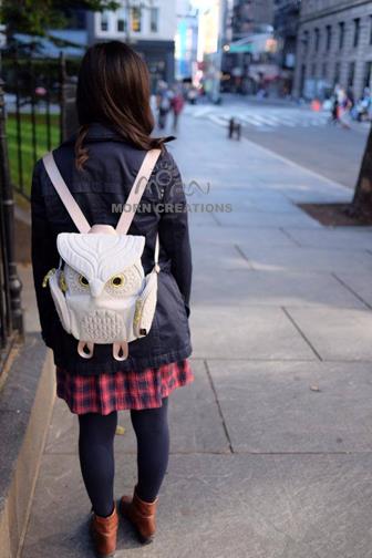 This quilted 3D Owl backpack is made of excellent craftmanship. The facial expression, beak and feathers are carefully stitched in fine details. The eyes are in convex shape giving you a mirror like reflection of your image. You and the Owl are making eye contacts now.