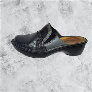 These NAOT® Women's Black Leather Slip-On Mules Clogs are in very good condition. There is some discoloration on the insoles, but does not affect the wearing or comfort. Please view all photos prior to purchase. They have been polished, cleaned, are ready for wear and should last for years to come!
