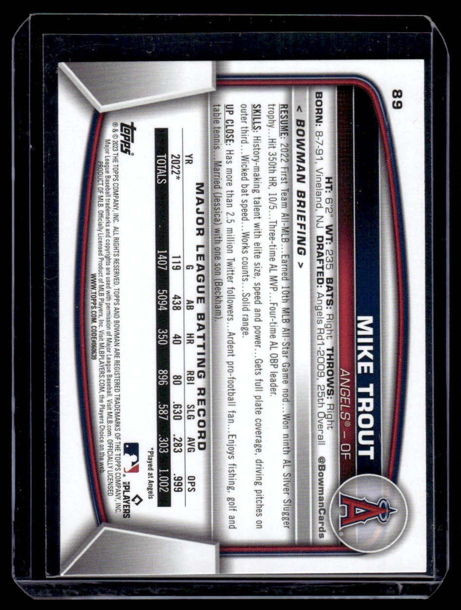 2023 Bowman Mike Trout Los Angeles Angels #89