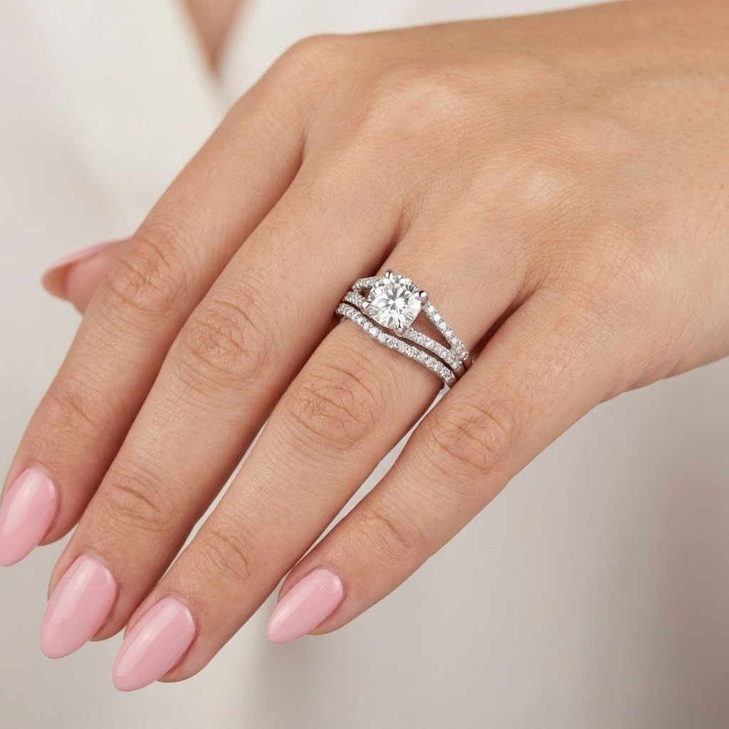 1.5CT NATURAL DIAMOND H/SI1 EXCELLENT CUT ROUND BRILLIANT PLATINUM 4-PRONG SETTING SPLIT-SHANK ACCENT RING WITH BAND