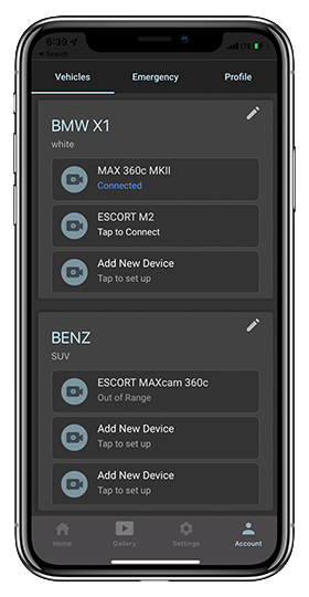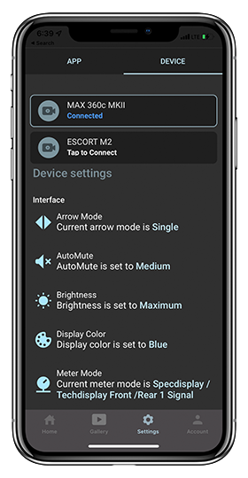 Easily control your compatible Escort detectors and dash cams from within Drive Smarter®