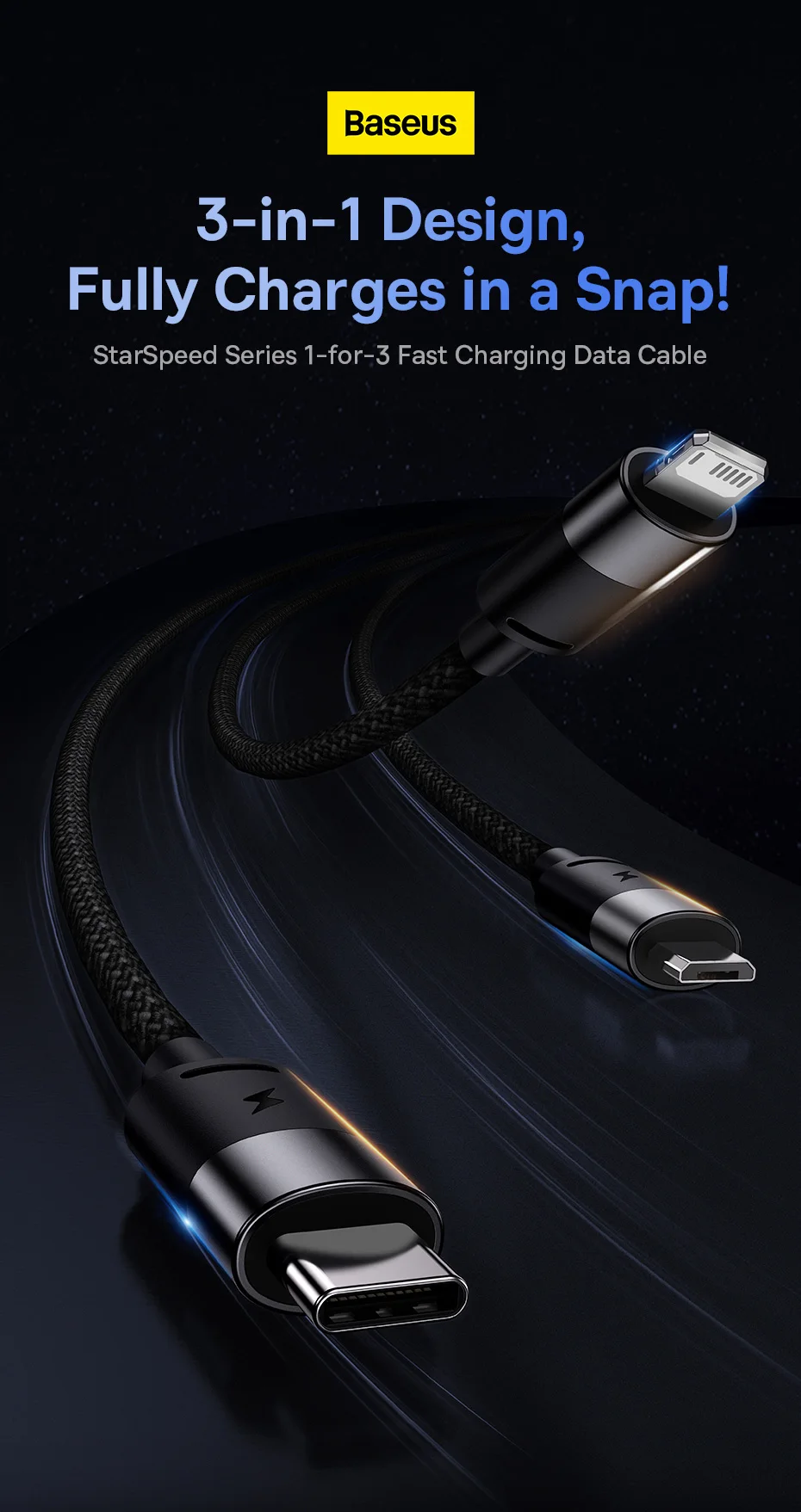 3-in-1 Design, Fully Charges in a Snap!