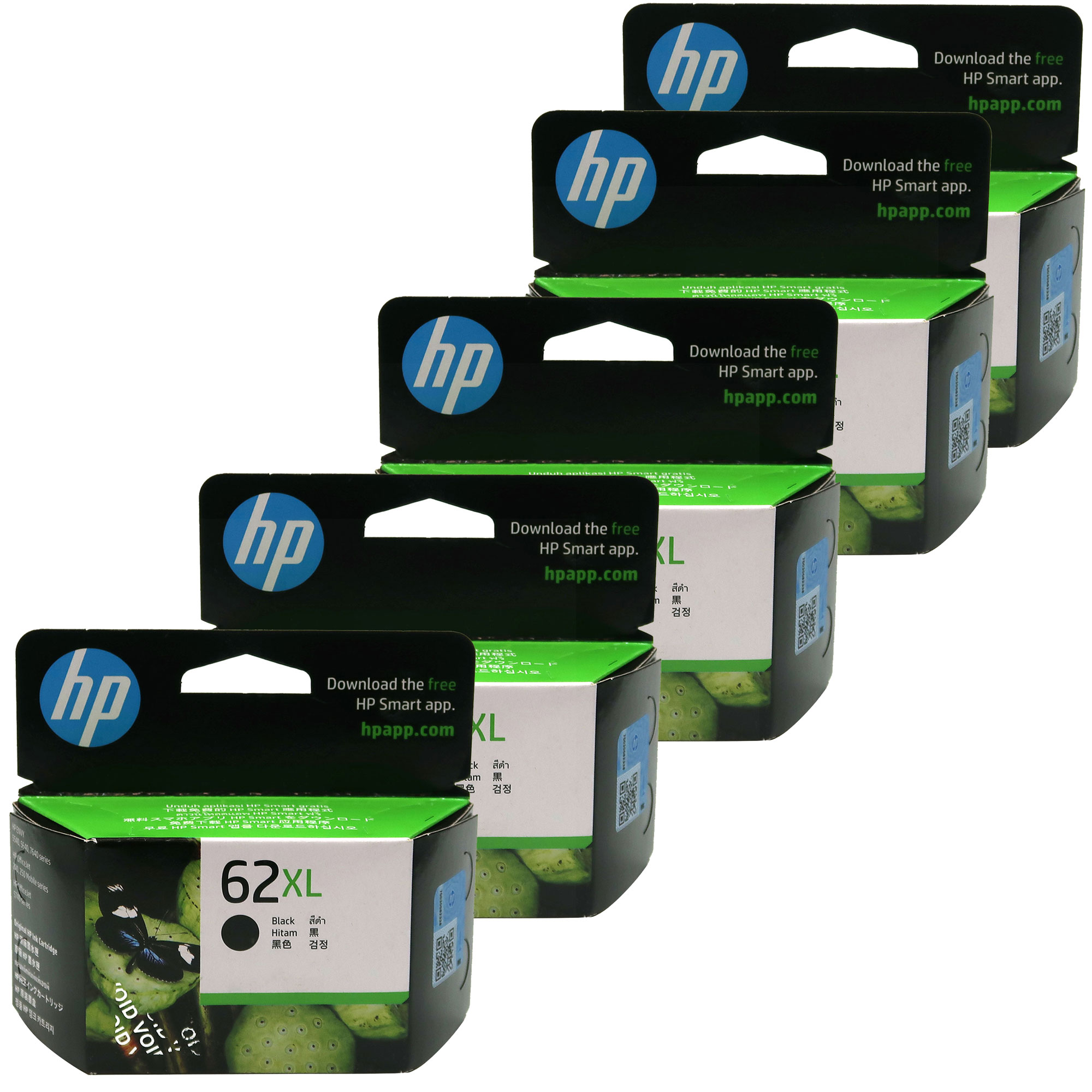 5x HP 62XL High Yield Black Original Ink Cartridge - 600 Pages (C2P05AA)