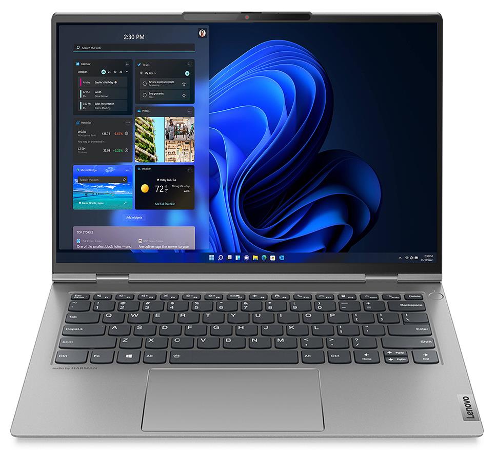 14.0" 2.2K (2240 x 1400) IPS, anti-glare, 300 nits, 16:10 aspect ratio, 1500:1 contrast ratio, Dolby® VisionTM, Auto Display Brightness, 100% sRGB color gamut, 170° viewing angle. Supports 3 external displays; Max resolution: |