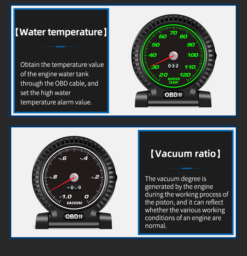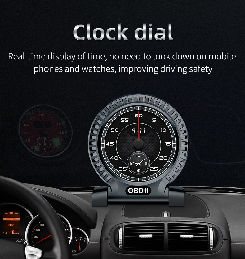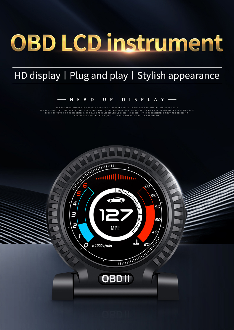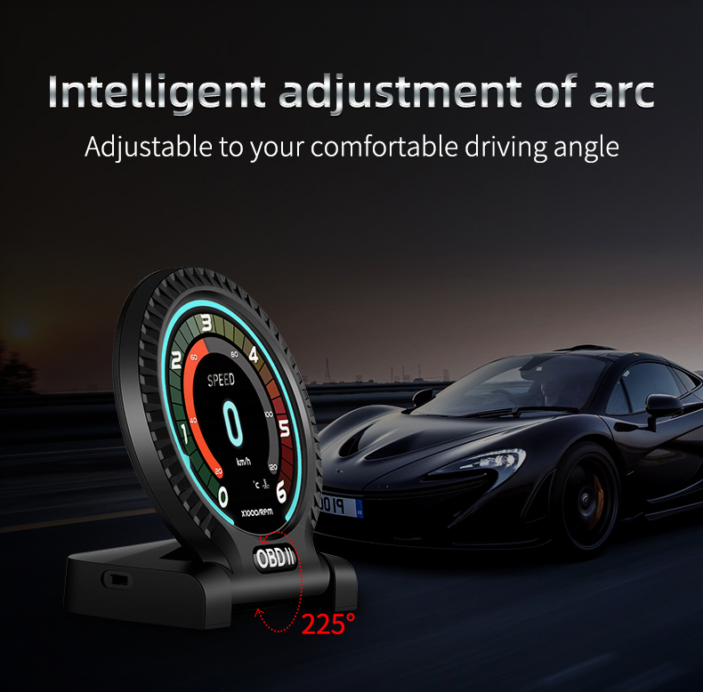 Thank you for purchasing the automobile OBD multi-function display produced by our company. This product reads the driving data of the vehicle through the OBD2 platform of the car ECU computer, such as vehicle speed, rotation speed, fuel consumption, water temperature and voltage, etc., and instantly reads the driving information under the condition that the wide field of view does not shift during the car driving, so as to prevent the driver from driving Looking down at the instrument during the process affects safety, this product does not rewrite any data in the ECU.