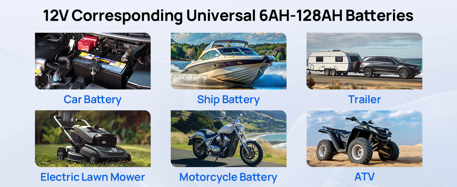 Charge and maintain cars, motorcycles, lawn mowers, ATVs, lawn tractors, trucks, SUVs, boats, PWCs, classic cars, and more.