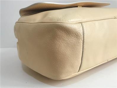 This bag is NEW WITHOUT TAGS and never been used in fact plastic tag attachment still attached to the bag but because it is vintage and has been stored for a long time please expect signs of shelf wear, there are some creases, markings and black dots on some areas of the bag, please see photos and you will be the judge if these type of wear takes away the beauty from this bag. Overallm absolutely NEW and never been used, there are no worn spots on bottom corners and interior shows no signs of ever been used. You can also tell from the feel of the leather bag has not been used at all so I am sure you won't be disappointed. This would absolutely make a nice gift that special girl who love the classic look. This is Guaranteed Authentic like all the bags listed. Comes wrapped in tissue paper. Measures aapproximately 15"L x 12"H x 5'W with 6" strap drop.