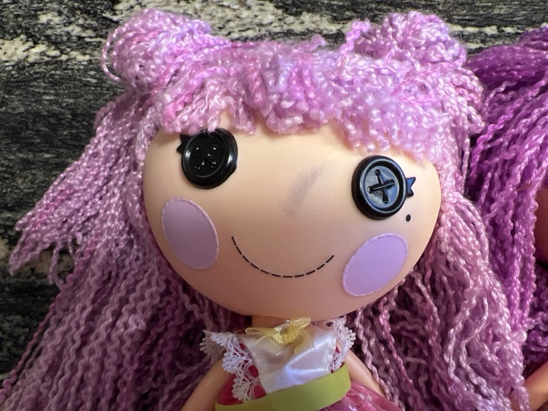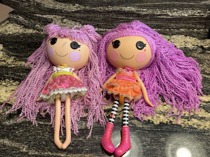 This is two dolls that are Jewel Sparkles and Peanut big Top with yarn hair. They are 12” tall. As you can see in the picture Jewel has a mark on her face. They are in good condition with minor scuffs or dirt from play. Look at pictures carefully. I have taken closeups of dolls faces. Please look at my other auctions. My mom is selling her collection of Lalaloopsy dolls.