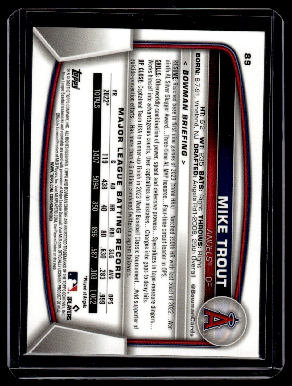 2023 Bowman Chrome Mike Trout Los Angeles Angels #89