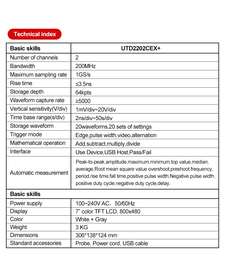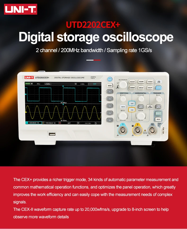 UNI-T UTD2202CEX+ Digital Oscilloscope USB Dual Channel 200Mhz 1G Sampling Rate High Voltage Probe PC LCD Portable Osciloscopio