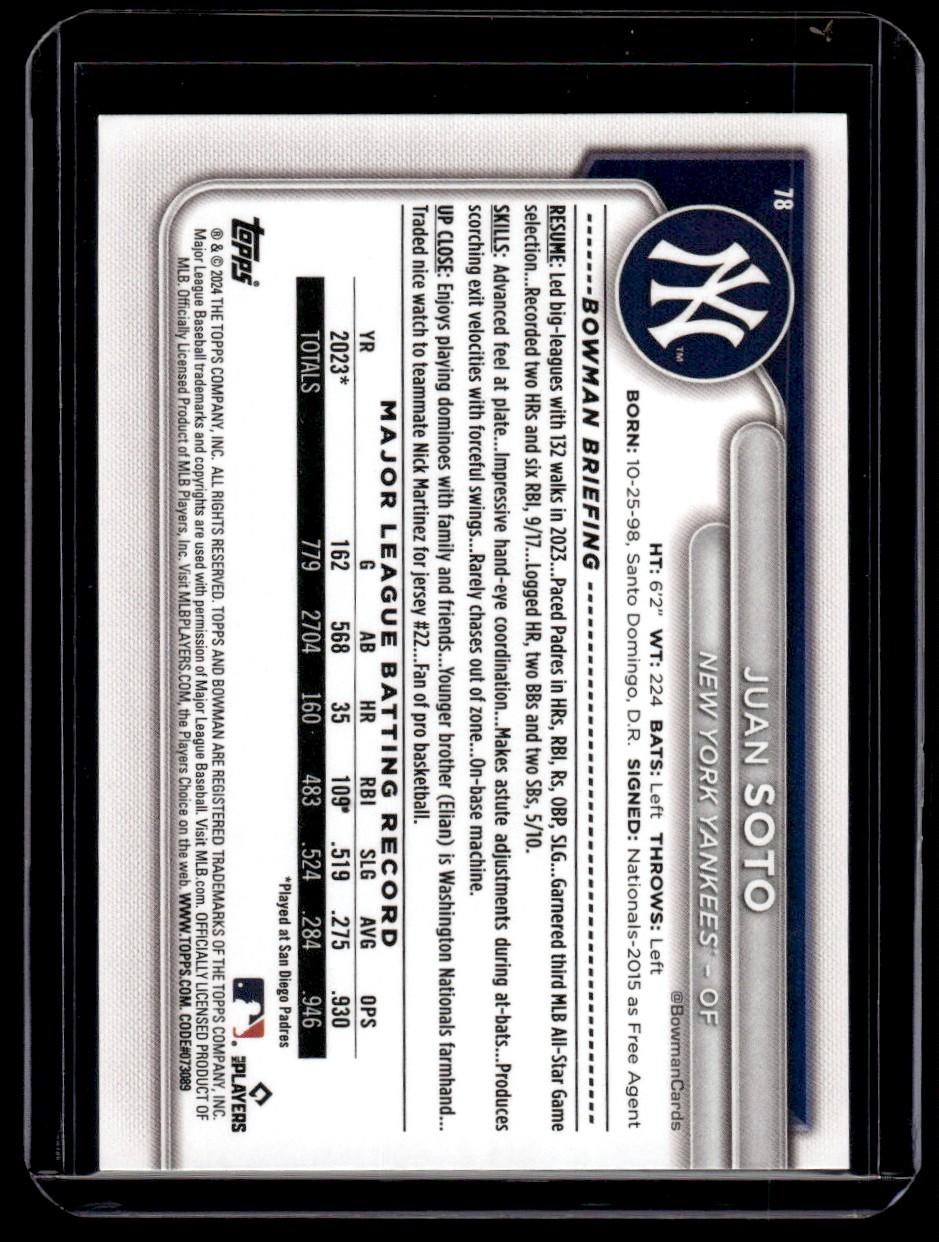 2024 Bowman Juan Soto New York Yankees #78