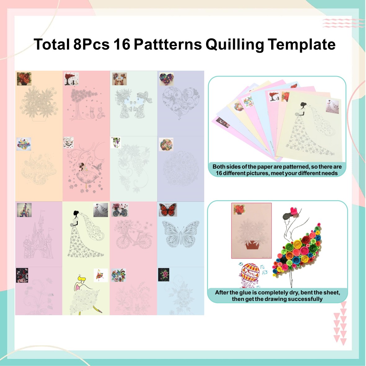 1* Set of Quilling Drawing (total 8pcs, 16 patterns)