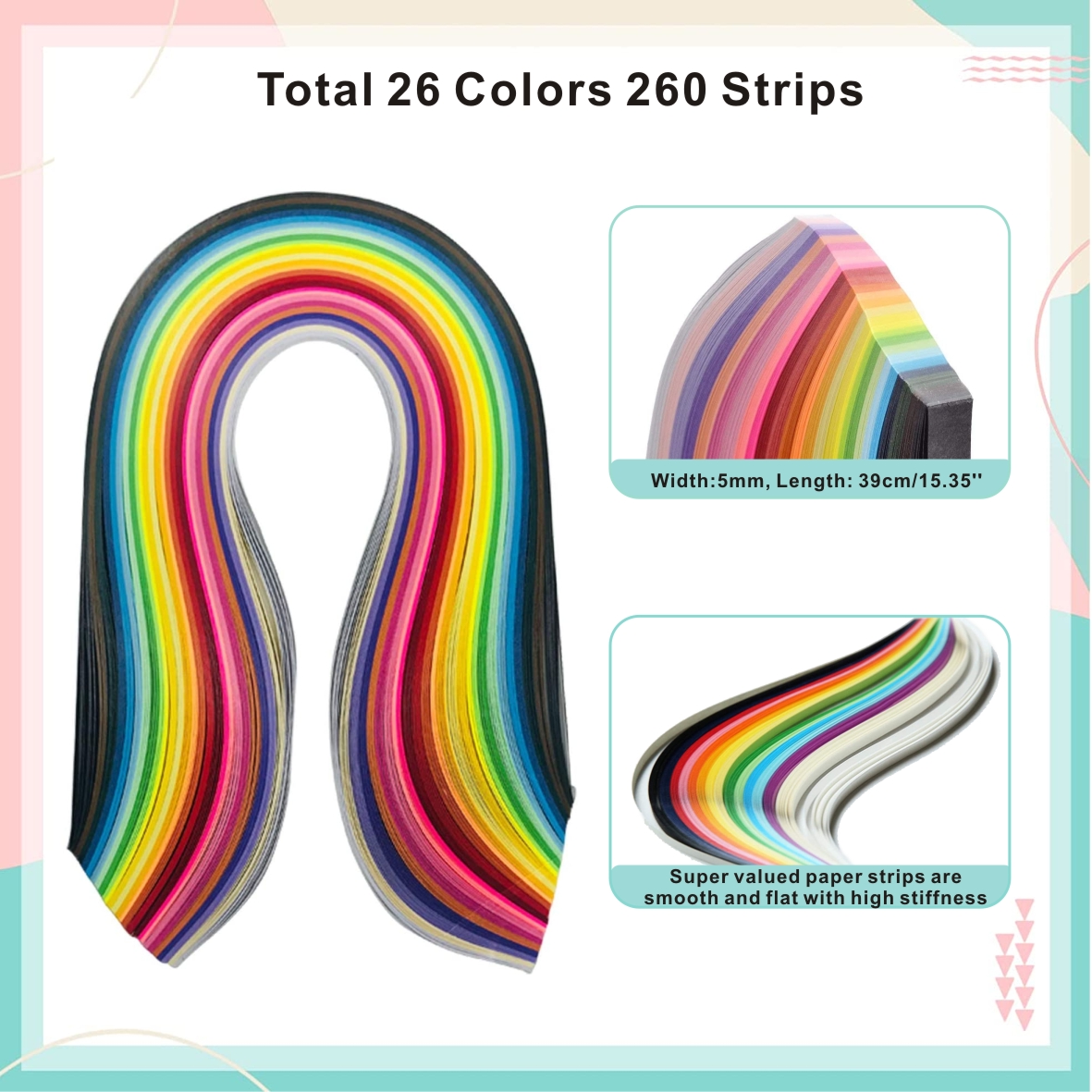 1* Pack of Quilling Paper(5mm Width,total 26 colors,260 Strips)
