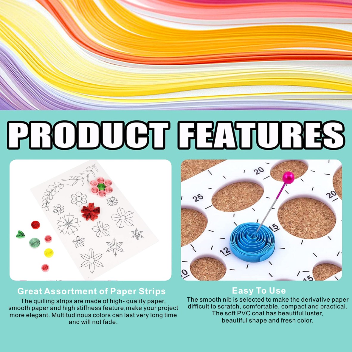 - The quilling tools kit can help rotate the card paper easily, and apply glue evenly. (Glue Not Include)