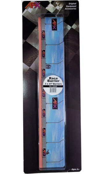 The AFX Race Barrier has double-side photo-realistic graphics and high-grip, multi-use adhesive for an easy-to-use, attractive addition to your race track.