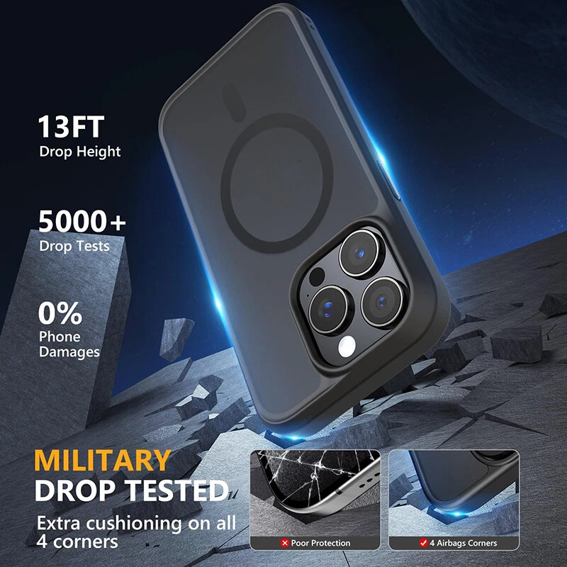 l 【Upgraded 13FT Military Drop Protection】iPhone phone case shockproof is a military protection case certified by SGS and ROHS.It uses a multi -layer buffer structure to absorb the largest external impact to provide more effective protection. After 5000 military standard drop tests, the phone still works well