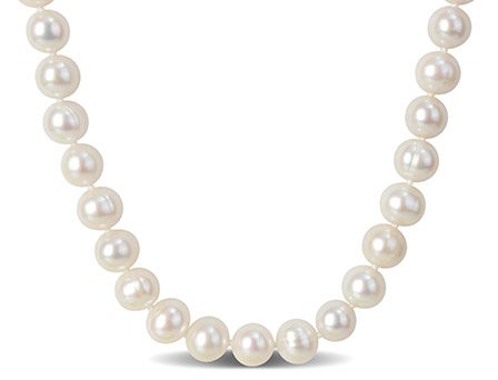 Gift yourself this Freshwater Cultured Pearl Strand Necklace to feel your best. Crafted in lustrous sterling silver, this necklace features white off round shape freshwater cultured pearls (7.5 - 8mm) forming an elegant strand. This necklace measures 24-inches long and secures with a fisheye clasp. Enhanced with high polish finish, this pearl necklace makes a valuable addition to any jewelry collection and is great for everyday wear or special occasions.