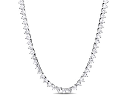 If you love collecting premium jewelry, then this opulent Tennis Necklace is for you. Crafted in sparkling sterling silver, this sumptuous necklace showcases 103 heart cut created white sapphire gemstones (4x4mm). Enhanced with a high polished finish, this ravishing necklace is suspended on an 18-inch round cable chain and secured with tongue and groove clasp. A perfect gift for the special someone.