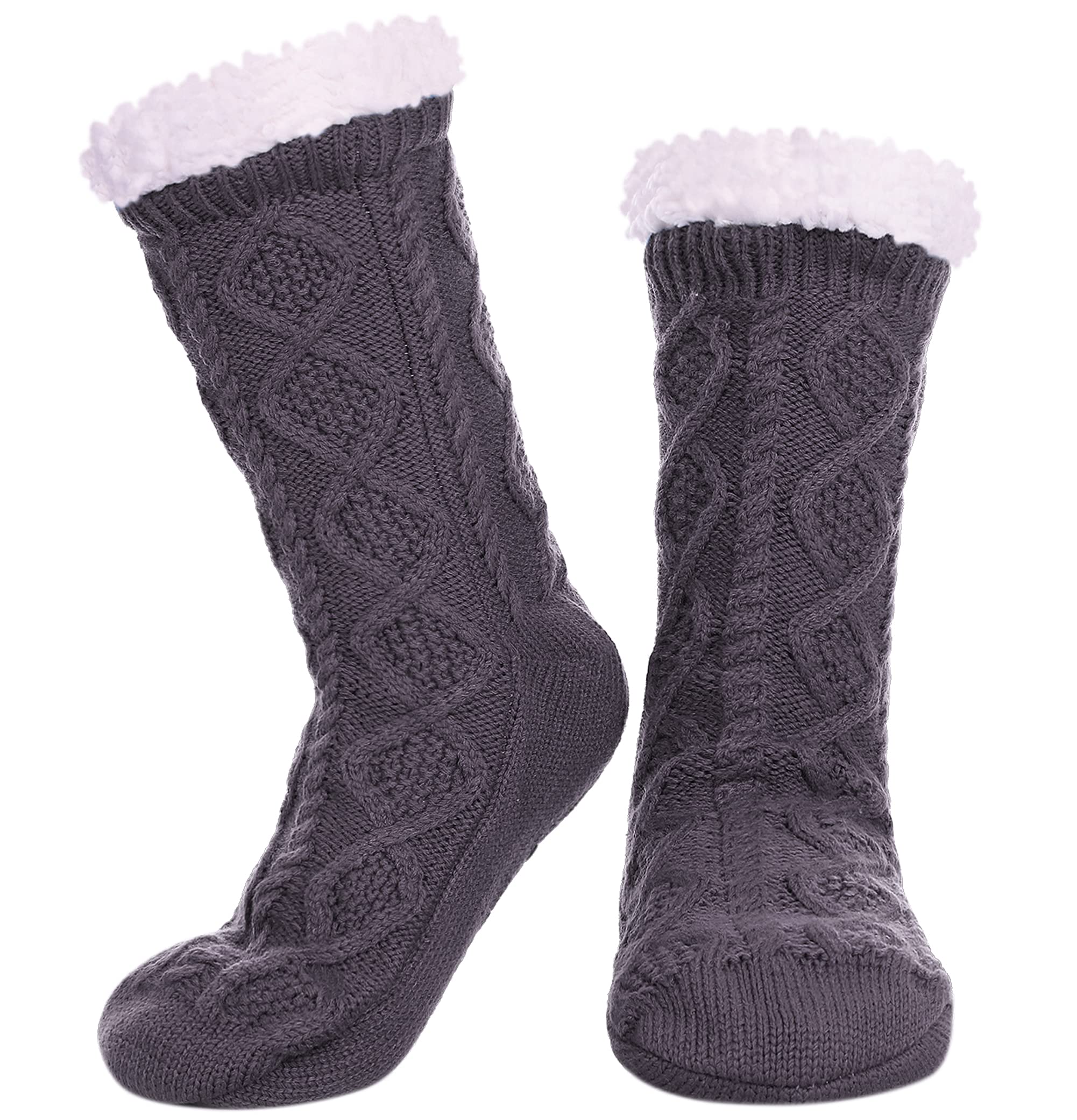 Womens Slipper Socks Winter Warm Fleece Lined Socks Cozy Soft Thick Fuzzy Non Slip Indoor Christmas Socks (Dark Gray Rhombic)