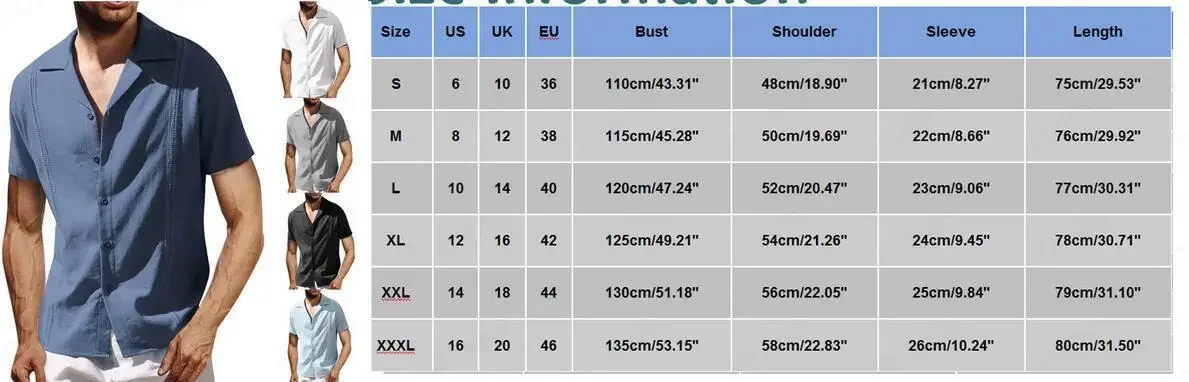 Men's Traditional Cuban Camp Collar Guayabera Shirt Short Sleeve Embroidered Mens Shirts Soft Breathable Solid Color Beach Shirt