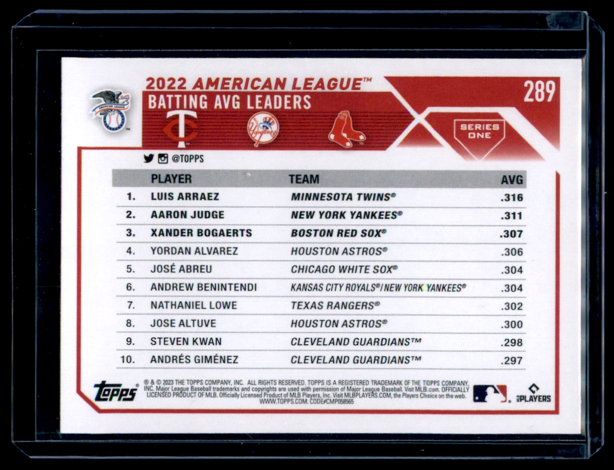 | 2023 Topps AL AVG Leaders Minnesota Twins/New York Yankees/Boston Red Sox #289 |