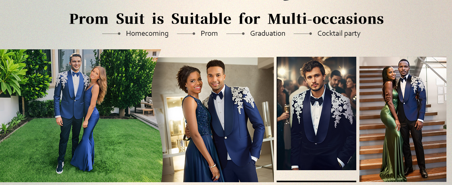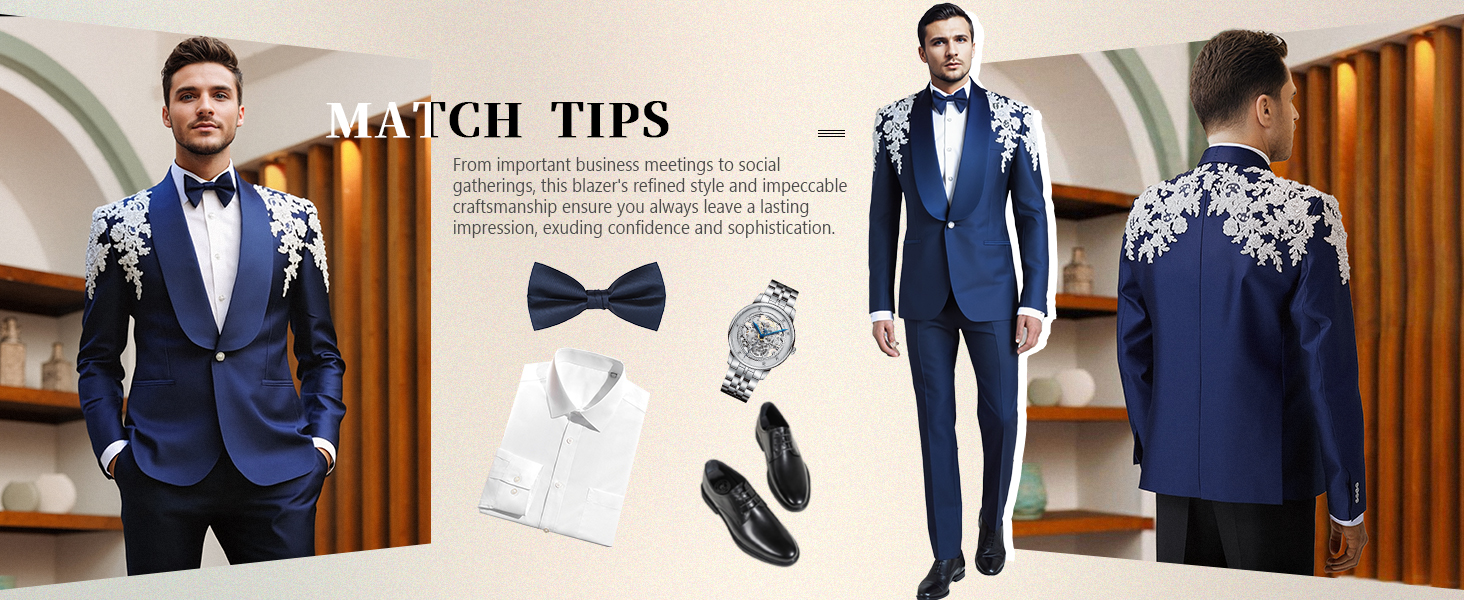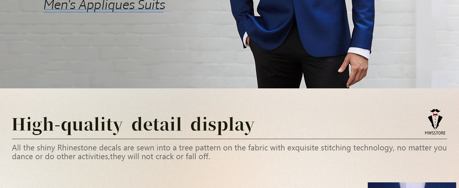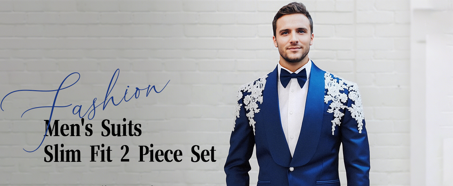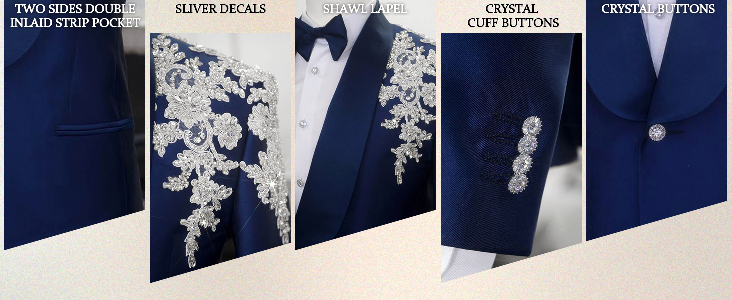 Royal Men's Rhinestone Decal Jacket Slim Fit Groom Wedding Business Formal Suits