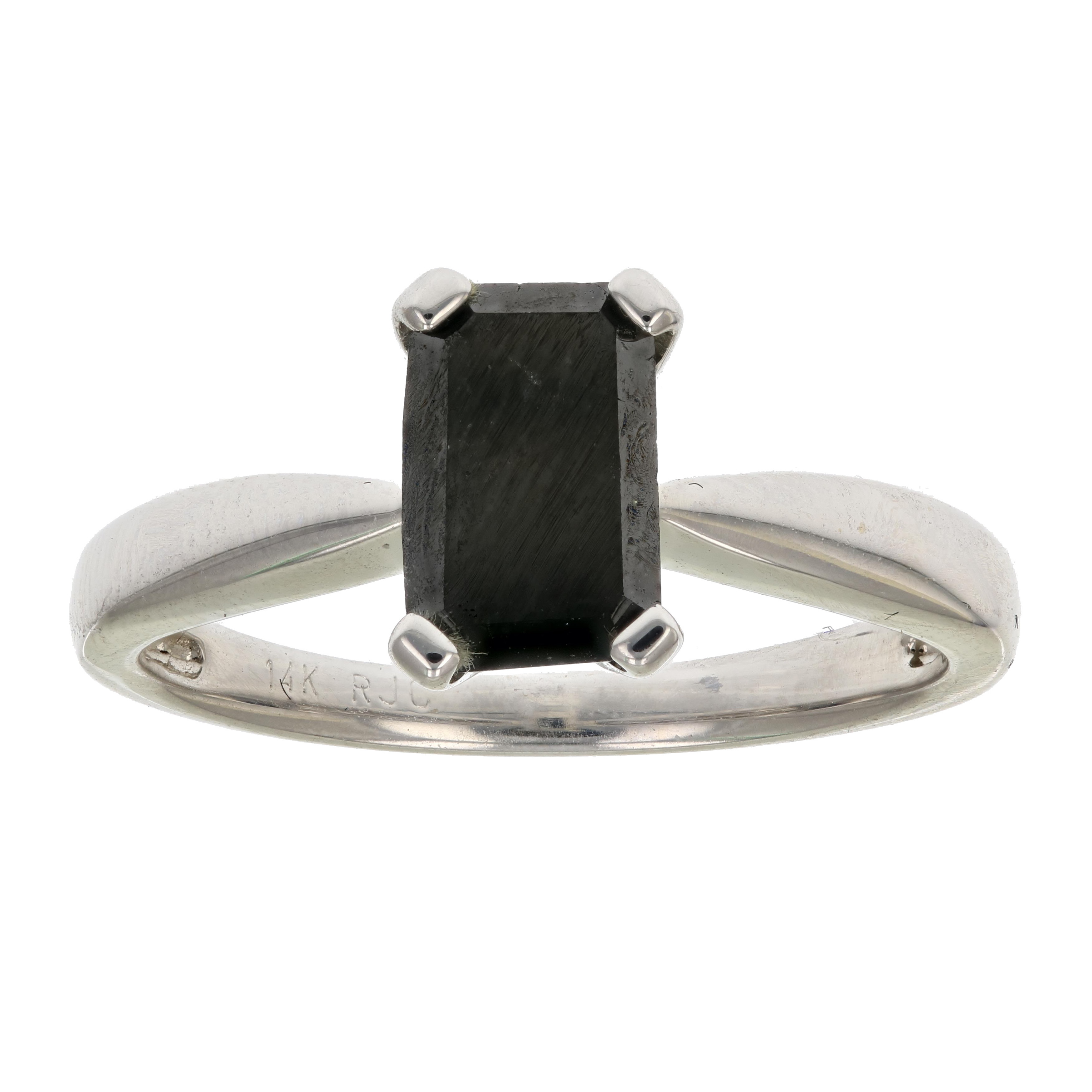 Product Description 1 cttw Black Diamond Solitaire Ring Emerald Shape 14K White Gold in Size 7