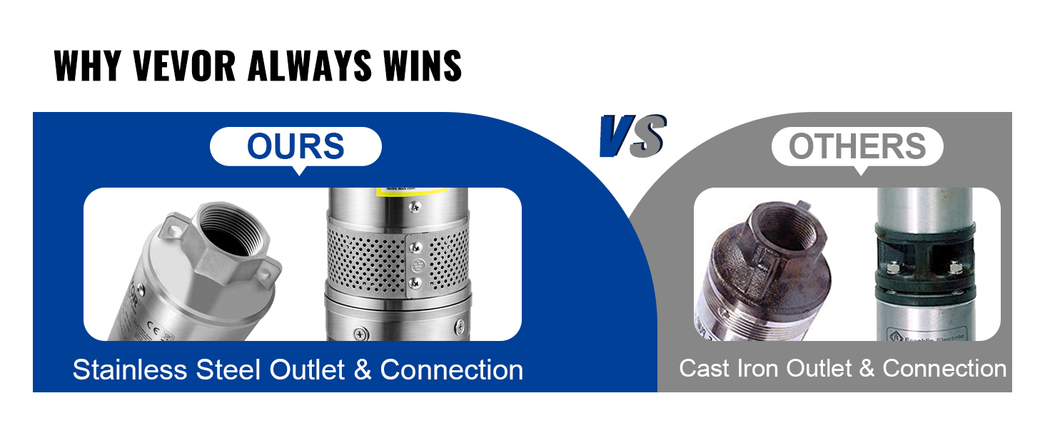 - Upgraded Stainless Steel: The whole frame of our deep well pump is unlike anything on the market. It is made of stainless steel, including the outlet and connecting components. You don't have to worry about it becoming rusted or corroded after being underwater for a long time. With ETL certification and IP68 waterproof grade, the pump can be used for 8-10 years. Stop wasting time! The perfect choice is in front of you!
