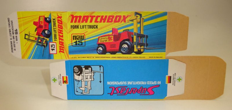 Lesney Matchbox 1-75 Superfast Series Made in England unfolded boxes No. 15B Fork Lift Truck