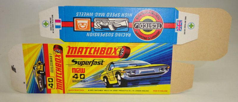 Lesney Matchbox 1-75 Superfast Series Made in England unfolded boxes No. 40B Guildsman