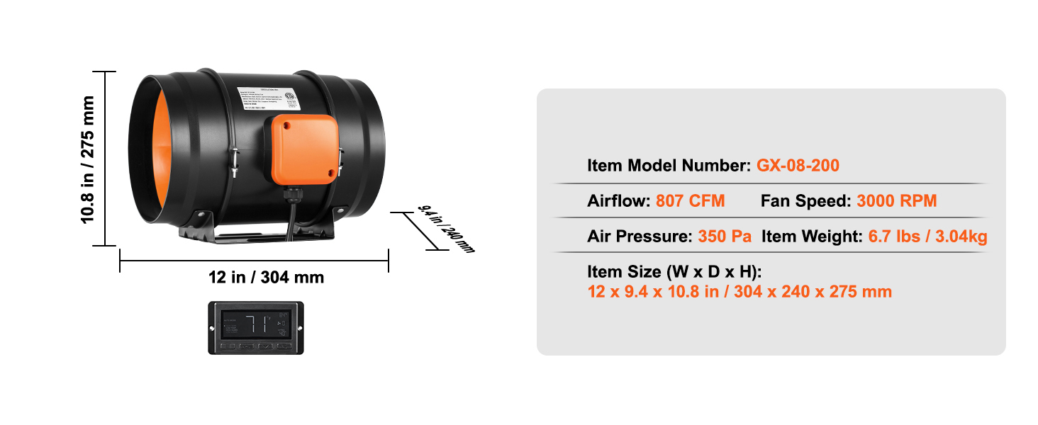 - Say goodbye to stale air: This inline fan delivers a powerful airflow of 807 cfm, ensuring effective ventilation and moisture control across large spaces. It helps maintain consistent air circulation, keeping your environment fresh and dry with ease.
