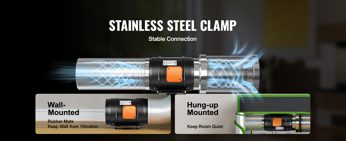 - Comprehensive Installation Kit: This package includes an 8-inch inline fan along with rubber mats designed to minimize vibrations and sturdy straps for secure installation. The versatile design allows you to install the durable duct fan either by suspending it or mounting it on a wall, offering flexibility to suit your setup.