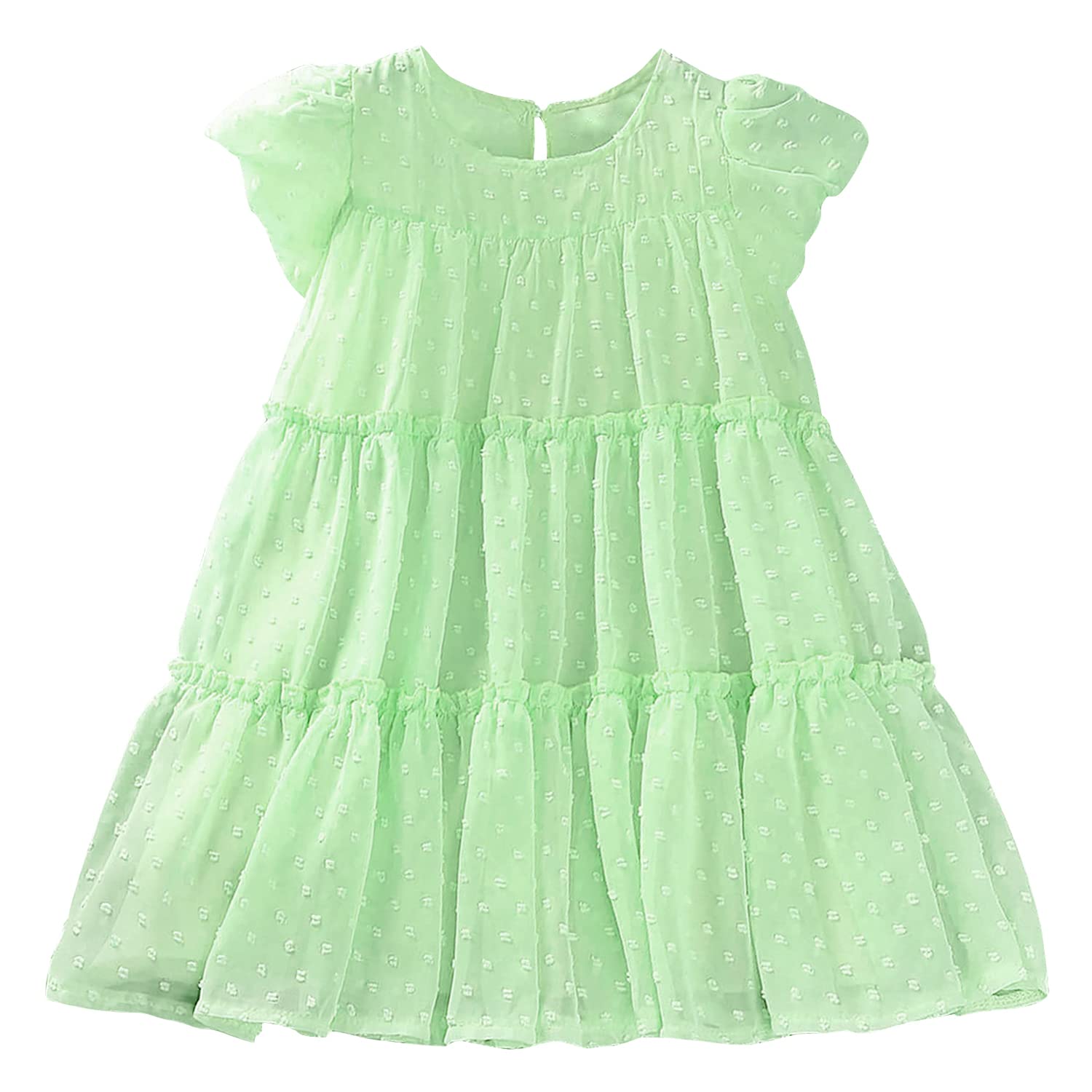 - Design: This dress for toddler girls is design with ruffle short sleeve, and ruffle hem,round neck, button end clouse in the back, knee length, A-line tunic dress, swiss dots flowy pleated dress with cotton lining.