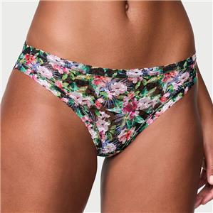 Supersoft and stretchy, this comfy lace is showcased on a pretty panty with just the right amount of everyday coverage. Low rise. Now with a higher rise in back. Lace lays flat for no show-through. Moderate back coverage: shows a little, but not all. Cotton gusset panel. Made of nylon/spandex.