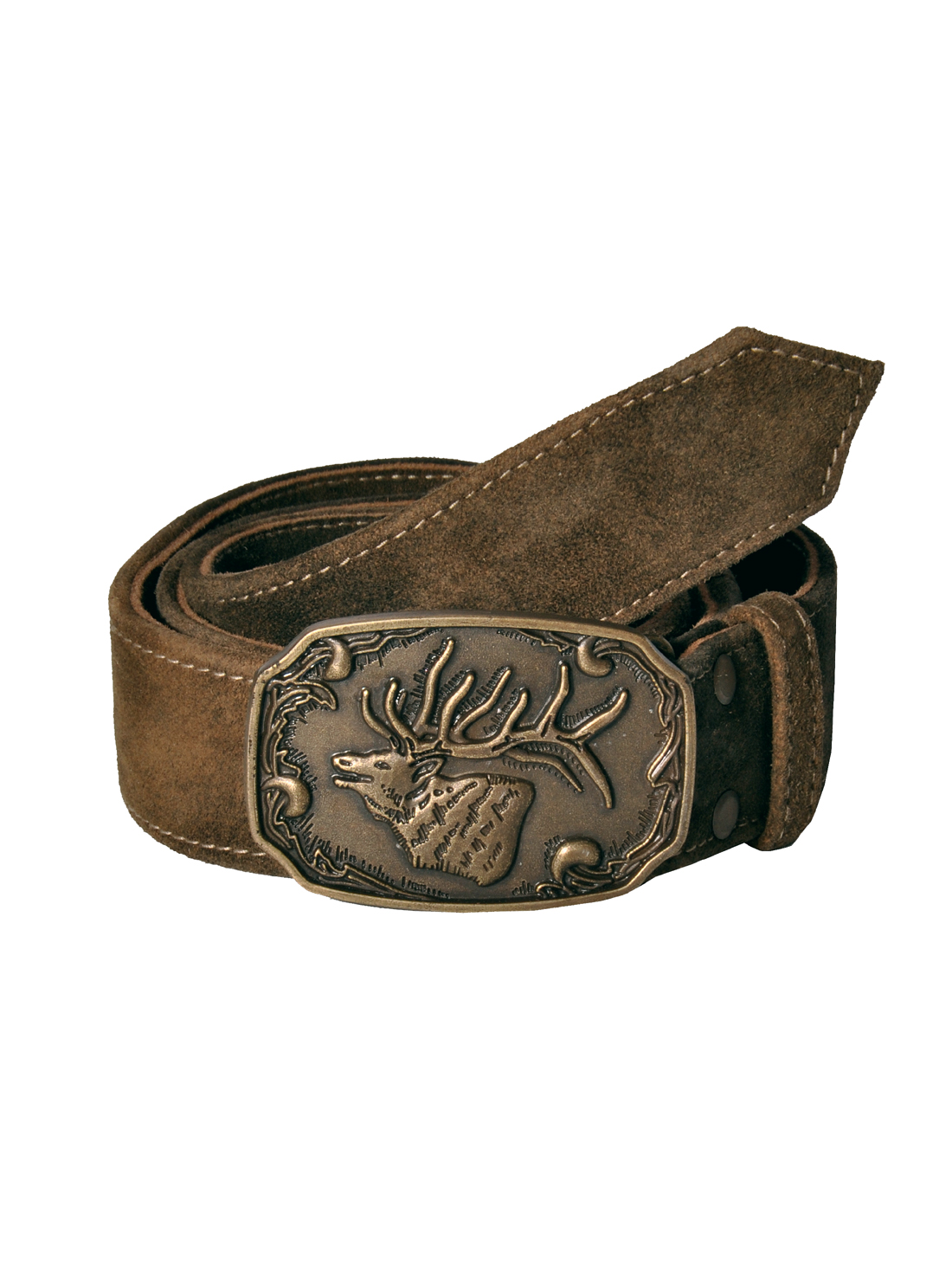 Moderner Trachtengürtel in dunkelbraun aus dem Hause Spieth & Wensky. Der Herrengürtel mit edler Metallschnalle lässt sich super zur Tracht kombinieren. Die Metallschnalle wird mit einem tollen Hirschsymbol verziert.