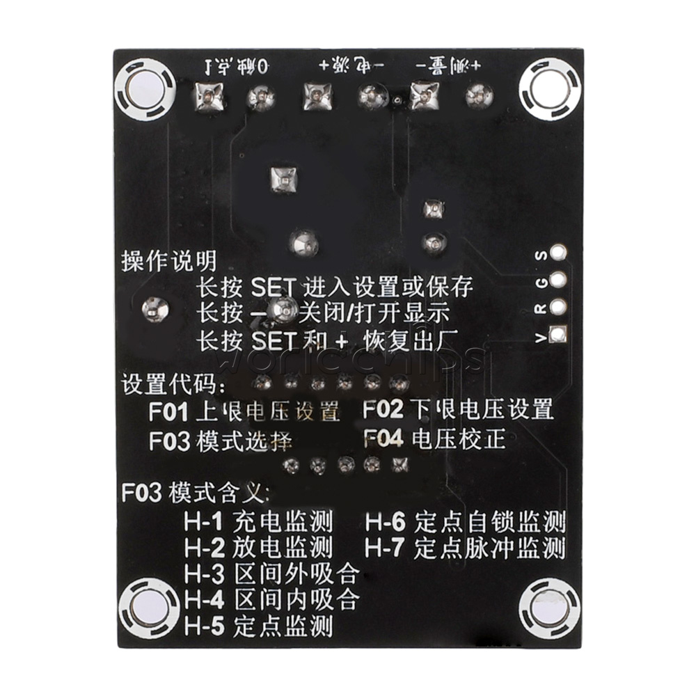 1. In a non set state, press the SET key briefly to cycle through the display: Work mode ->Lower limit voltage ->Upper limit voltage.