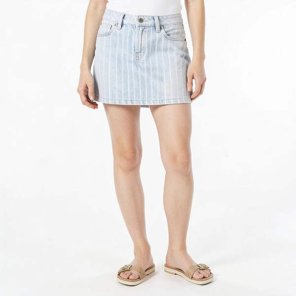 Sun-faded stripes define a Vanilla Star denim mini skirt, a cute go-to style for warm weather