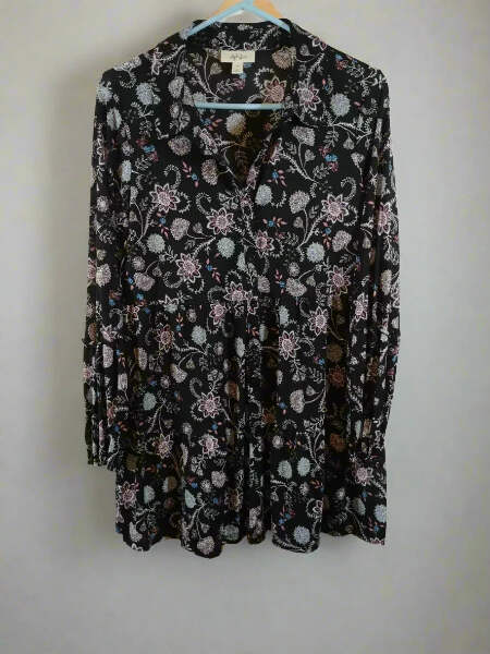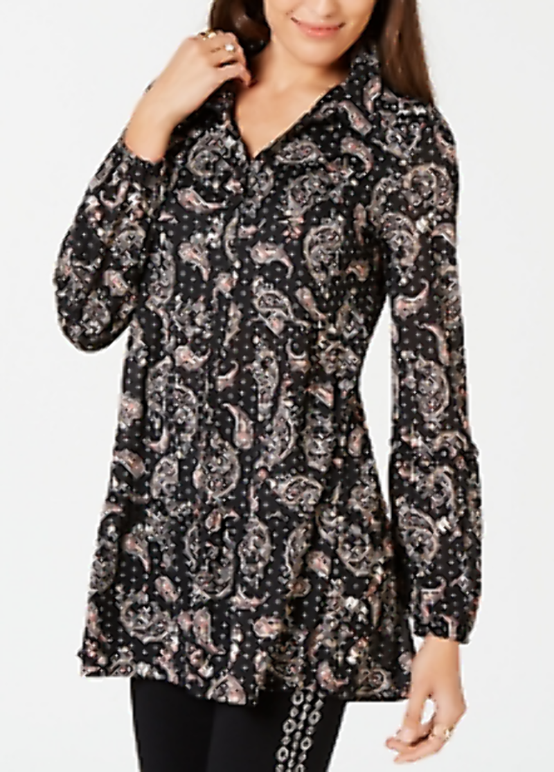In a relaxed silhouette thats finished with a flowing peplum hem, this Style & Co button-down is an instant casual-chic staple. Approx. model measurements: height: 510, bust 35-1/2, waist 27, hips 35 and she is wearing a size medium Hits at hip; approx. 32 long Point collar button-down closures Peplum hem Blouson sleeves Nylon Machine washable Imported