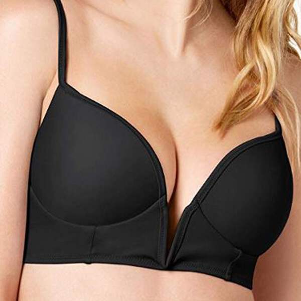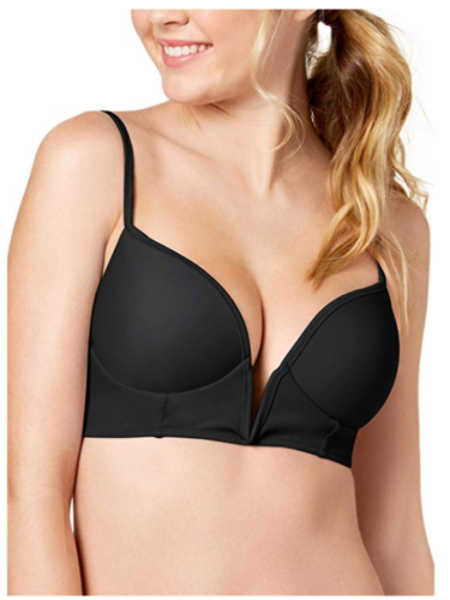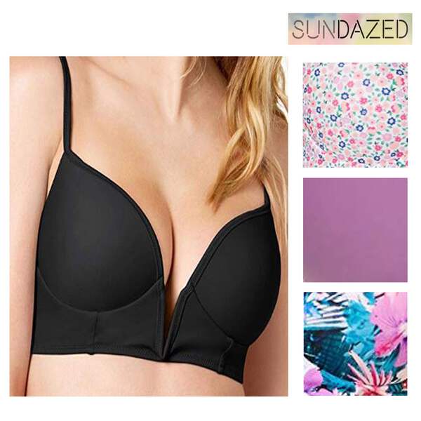 Item Notes: 80% Nylon 20% Spandex American Size: 34B-C Color: Black Fabric Composition: 80% nylon, 20% Spandex A strategic V-wire between the bust elevates this bikini top from Sundazed. It features bra sizing for an enhanced fit. Non-removable soft cups. Pull-on styling; adjustable over-the-shoulder straps; hook-and-loop closure at back.