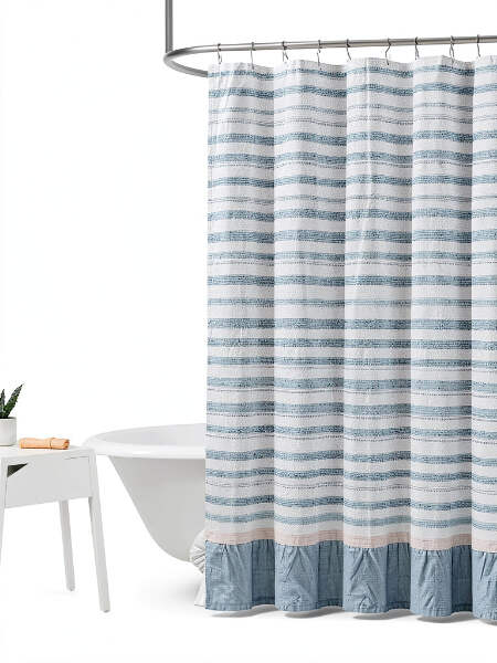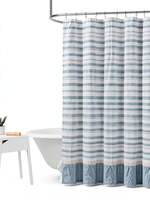 Update your bathroom with the Tommy Bahama Tidal Stripe shower curtain. The curtain features blue and khaki stripes throughout that is sure to add a coastal feel to your space.