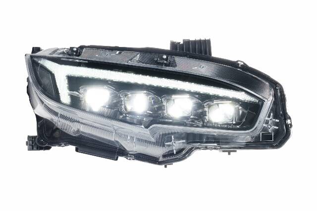DRL OPTICS: The turn signals and daytime running lights illuminate modern reflector-based optics with special optical surface textures that enhance intensity at a distance, no matter day or night. These easily out-shine the low-tech daytime running lights found in most every other aftermarket headlamps for the Civic.