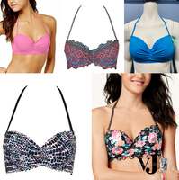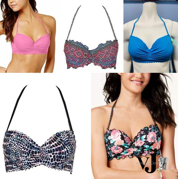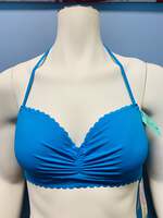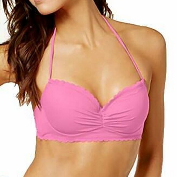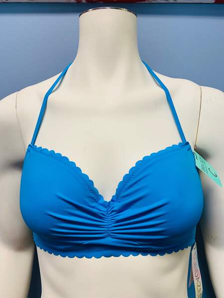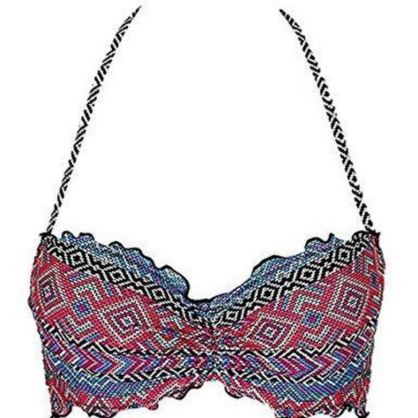 Ruffles mimic the waves in Sundazeds haute bikini top. This bra-sized piece also boasts underwire for an essential boost. Hook-and-eye closure at center back; halter straps tie at back neck Sweetheart neckline; scalloped ruffle trim at edges Body: nylon/spandex; lining: polyester/spandex; cup: polyurethane Hand wash Imported