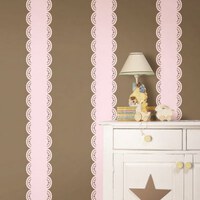 The WallPops Stripe Wall Border is a peel-and-stick border that can be uséd on any wall to create extra style. Each of the peel-and-stick wall borders comes in Gigi Pink to add color to solid-colored walls. The nursery wall border is removable so that it can be relocated to change the design of the walls any time. WallPops Stripe Wall Border sticks to the walls without leaving a gummy residue behind so that it can be réuséd in a room to change the decor as the child ages. The Gigi Pink Peel and Stick Wall Border is easy to apply to the walls since the adhesive is already attached with a peel-off backing. The nursery wall border comes in Gigi Pink to be a complementary color in any nursery or room.